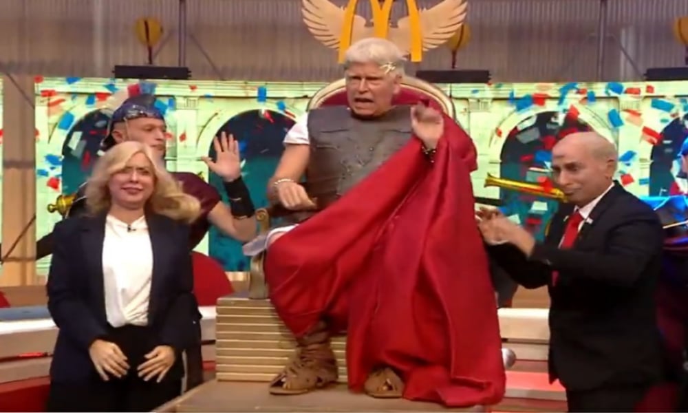 امریکی صدر کی ایک تمسخرانہ ویڈیو نشر کردی گئی ہے جس میں انہیں نے بادشاہ بنا تخت پر بیٹھا دکھایا گیاہے ۔ اس ویڈیو میں ان کے ارد گرد اطالوی وزیراعظم اور اسرائیلی وزیراعظم کے فرضی کرداروں کو بھی دکھایا گیا ہے۔