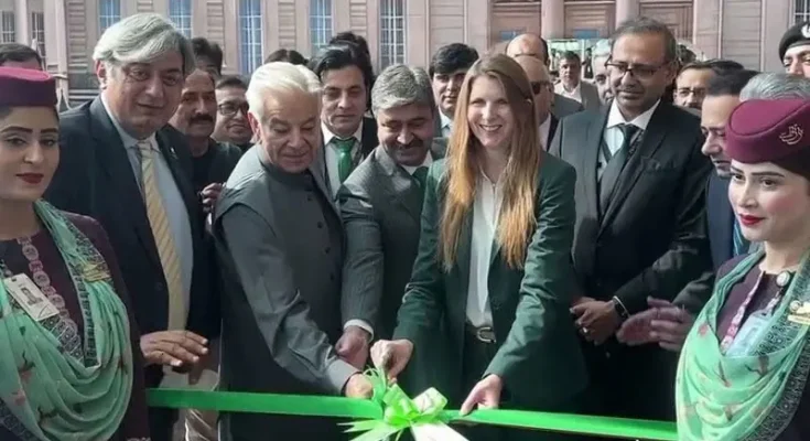 پی آئی اے کا پاک-برطانیہ فلائٹ آپریشن بحال ہونے پر اسلام آباد میں خصوصی تقریب کا انقعاد کیا گیا جس میں وزیر ہوابازی خواجہ آصف، برطانوی ہائی کمشنر، سیکریٹری دفاع اور دیگر شریک ہوئے۔