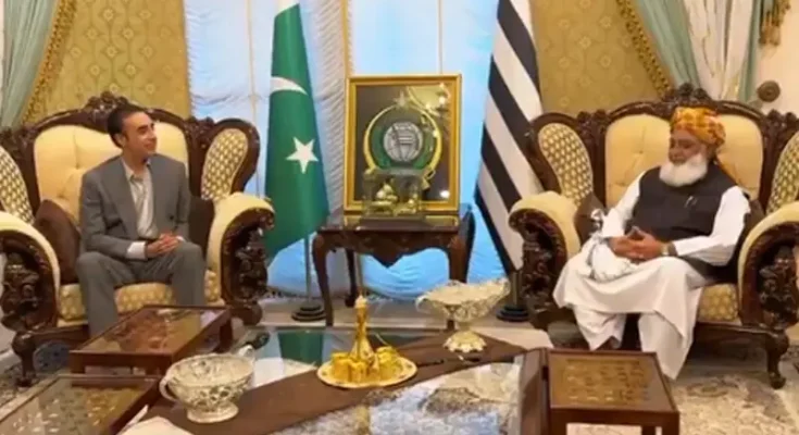 چیئرمین پاکستان پیپلز بلاول بھٹو زرداری اور جمعیت علمائے اسلام (ف) کے سربراہ مولانا فضل الرحمٰن کے درمیان ایک گھنٹہ تک جاری رہنے والی ملاقات ختم ہوگئی۔