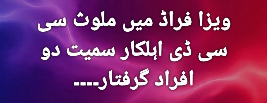 ملتان () تفصیل کے مطابق انسانی سمگلنگ اور ویزا فراڈ میں ملوث سی سی ڈی اہلکار سمیت دو افراد کو گرفتار کر لیا گیا ہے ایک شخص نے یونان میں نوکری کا جھانسہ دے کر 38 لاکھ روپے کا فراڈ کیا جبکہ بہاولپور سی سی ڈی کے اہلکار نے 18 لاکھ روپے کی عوض فرانس میں ناقوی دلوانے کا جھانسہ دے کر لوگوں کو لوٹ لیا ۔دونوں ملزمان کو گرفتار کر دیا گیا ہے