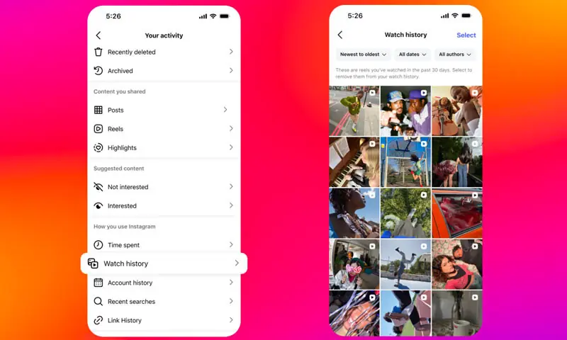 انسٹاگرام پر اسکرولنگ کے وقت دیکھی گئی ویڈیو یا پوسٹ کے اسکرین سے غائب ہوجانے کے بعد دوبارہ دیکھنا ممکن نہیں تھا لیکن اب صارفین ’واچ ہسٹری‘ کے فیچر کے ذریعے وہ مواد بھی دیکھ سکیں گے۔