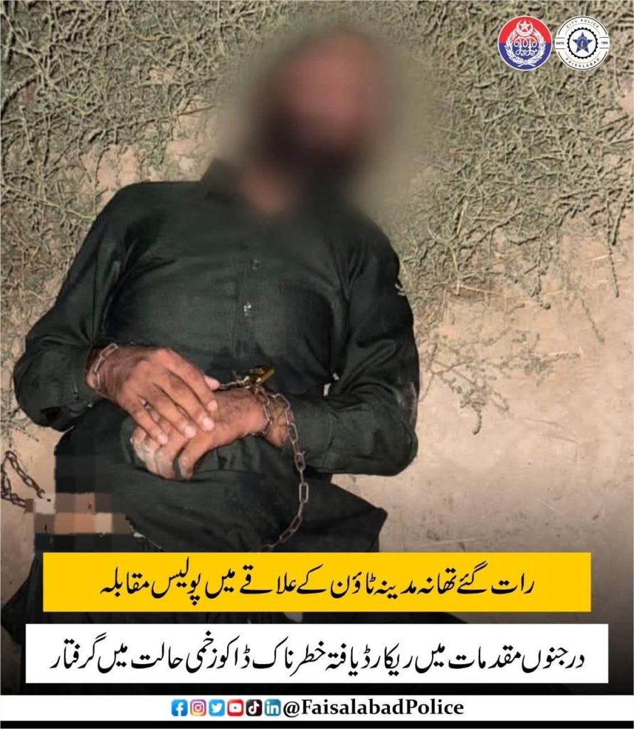 فائرنگ کے تبادلے کے دوران درجنوں مقدمات میں ریکارڈ یافتہ خطرناک ڈاکو "امین” زخمی حالت میں گرفتار۔