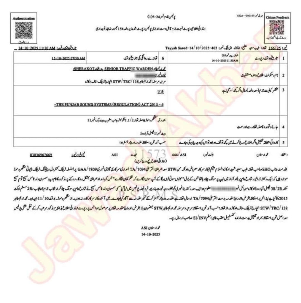 (مینوں ستی نوں جگا کہ آپ سون لگا این )چلا کر سفر کر رہا تھا اور پولیس کے روکنے پر وہ اس کا کوئی خاص جواز پیش نہ دے کرسکا اس لیے پولیس نے رکشہ سمیت مالک کو بھی بند کر دیا ہے ۔