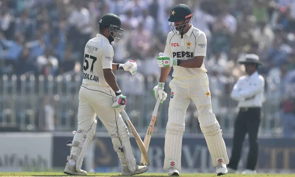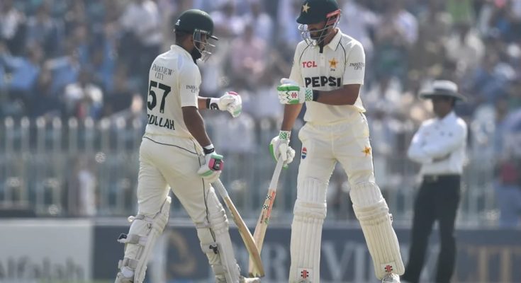 پہلے روز پاکستان نے ٹاس جیت کر پہلے بیٹنگ کا فیصلہ کیا تھا۔ پاکستان کی جانب سے کپتان شان مسعود 87 جبکہ عبداللہ شفیق 57 رنز بنا کر آؤٹ ہوئے تھے۔