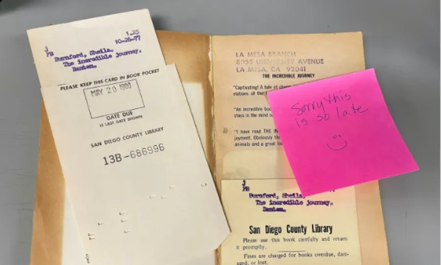سان ڈیاگو کاؤنٹی نے اپنے انسٹاگرام پوسٹ میں کہا کہ لائبریری میں کتاب کو واپس کرنے میں کبھی دیر نہیں ہوتی، کیونکہ لائبریری دیر سے واپس کی جانے والی کتابوں پر اب روزانہ کی بنیاد پر جرمانہ نہیں لیتی۔